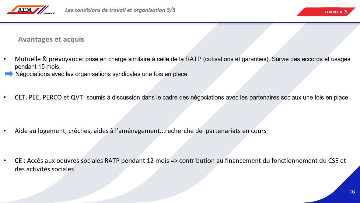avantages-et-acquis-684aa87f7a8d0284809524.pngATM reprend l’ancienneté des salariés transférés et applique le dispositif de garantie de rémunération prévu spécifiquement par le Code des transports à l’article L.3111-16-17. En fichier joint ci-dessous, les explications.